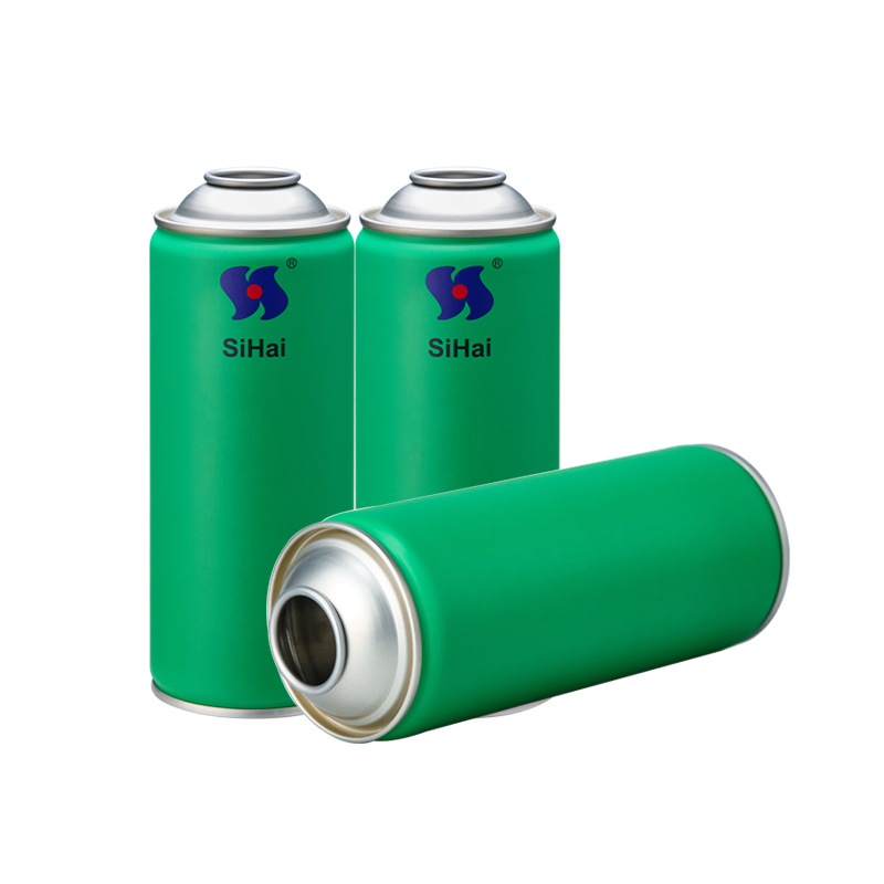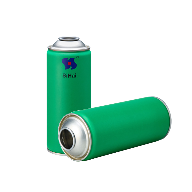 Lata vazia de tinta spray aerossol, dimensões 65x158mm, gargalo prateado na parte superior e inferior, impressão CMYK.